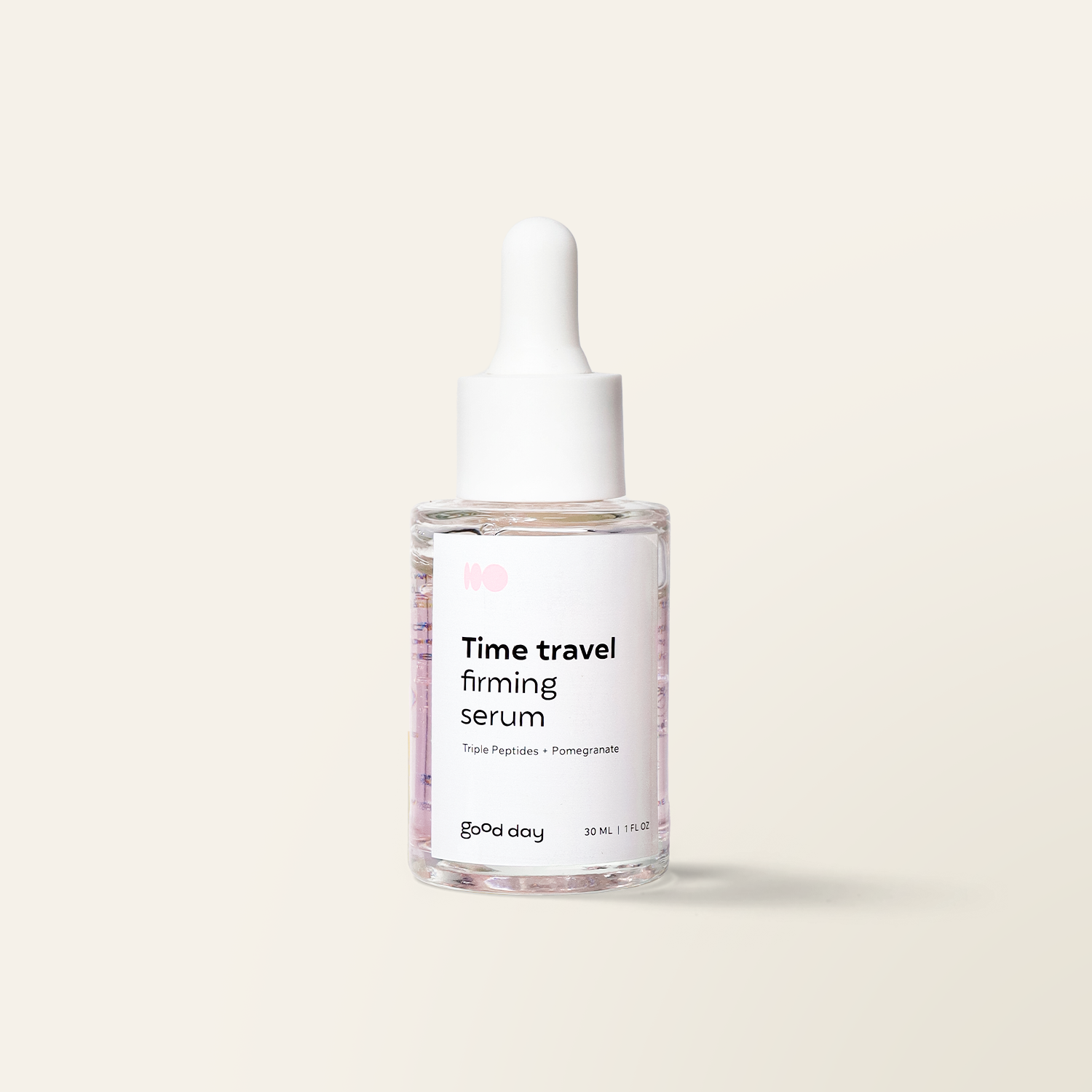 Serum chống lão hóa Time Travel 30ml giúp tăng sức mạnh trẻ hóa và hỗ trợ thúc đẩy quá trình phục hồi da. Công thức tiên tiến từ chiết xuất Lựu đỏ kết hợp với ba loại Peptides giúp tăng cường bảo vệ da, thúc đẩy quá trình tăng sinh collagen và elastin, ngăn ngừa và cải thiện các dấu hiệu lão hoá sớm trên da.